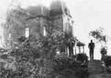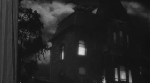 3. À cette découverte succèdent deux plans d'ensemble de la maison, vue de l’extérieur, avec la silhouette de Norman qui paraît démesurée, et toujours dans l'obscurité.
