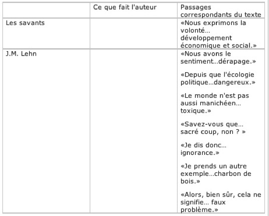 2. Pour suivre le déroulement de l'argumentation contenue dans les passages en italiques, complétez le tableau suivant :