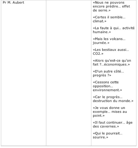 « Nous ne pouvons encore prédire avec une certitude absolue, commente un autre signataire de l'appel, le professeur Maurice Aubert, océanographe et président du Centre d'études et de recherches de biologie et d'océanographie médicale (CERBOM), les changements climatiques que pourrait entraîner l'effet de serre. Certes, il semble que nous soyons dans une période de réchauffement de notre climat. La faute à qui ou à quoi ? Nous ne savons pas encore l'évaluer précisément ; est-ce dû à un phénomène naturel puisque la Terre, tout au long de son histoire, a subi de grandes variations climatiques allant de réchauffement en refroidissement ? Est-ce dû à l'activité humaine ? Mais les volcans aussi ont une responsabilité dans l'effet de serre. Un volcan en éruption crache infiniment plus de gaz carbonique (CO2) que tout la circulation du monde en une journée. Les bestiaux aussi dégagent du CO2. Alors qu'est-ce qu'on fait ? On raie ces derniers de la surface de la terre, on terrasse les volcans, on supprime les voitures, on interdit toute forme d'énergie à base de combustibles fossiles ? Il ne faudrait quand même pas oublier qu'il y a sur Terre plus de cinq milliards d'hommes qu'il faut nourrir, chauffer et qui ont de légitimes besoins économiques. D'un autre côté, bien sûr, il faut se rendre à l'évidence : notre planète supporte de moins en moins l'hyper activité qu'on lui fait subir. Faut-il pour autant crier haro sur le progrès ? Cessons cette opposition simpliste. La science et l'industrie, dont la mission est tout de même de se mettre au service de l'humanité, ont au contraire un rôle fondamental à jouer dans la protection de l'environnement. Car le progrès et le développement, c'est aussi arriver à définir précisément les risques et mettre au point des technologies propres, capables de freiner la destruction du monde. Je vous donne un exemple : il y a trente-cinq ans, le commandant Cousteau assurait que la Méditerranée n'en avait plus pour longtemps avant devenir une mer morte. Qu'en est-il aujourd'hui ? Les taux de mercure, de matières organiques et des bactéries ont été divisés par cent grâce aux techniques d'assainissement et d'épuration mises au point. Il faut continuer dans ce sens. Et arrêter de prétendre qu'il n'y a qu'une seule issue valable : retourner à l'âge des cavernes. Qui le pourrait d'ailleurs ? J'ai vu un ami astronome qui est un écologiste forcené. Il a installé des capteurs solaires autour de sa maison et se promène à cheval dans sa région, le midi. Mais quand il doit aller siéger à l'Académie des Sciences à Paris, que croyez-vous qu'il fait ? Il prend l'avion. Permettez-moi de sourire.