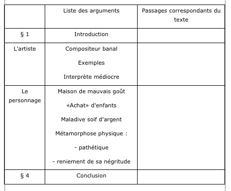 Complétez le tableau suivant afin de suivre la structure du texte :
