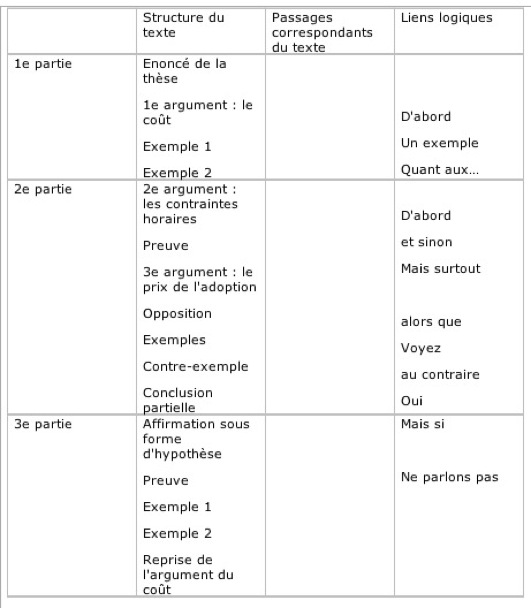 4. Pour découvrir le cheminement de la pensée de l'auteur, complétez le tableau suivant :