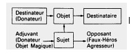 Greimas a transformé et complété Propp par les découvertes faites par LéviStrauss sur l’analyse des mythes. Il propose de répartir les rôles de Propp selon le schéma suivant :