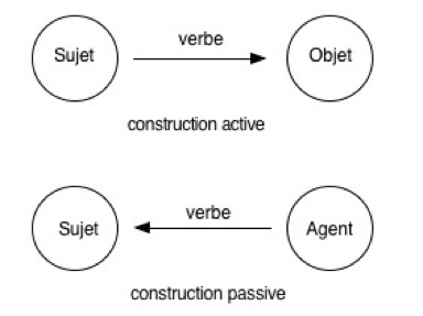 Une phrase dont le verbe possède un COD est dite de construction active. Elle peut généralement être mise en relation avec une phrase passive correspondante. Les deux phrases ont la même signification, mais elles ne peuvent pas se substituer l’une à l’autre dans un texte : la présentation de l’information n’est pas la même.