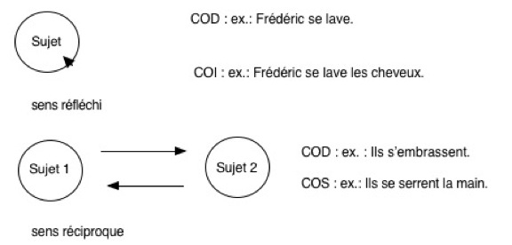 A. On distingue les verbes exclusivement pronominaux (s’enfuir, se souvenir, s’évanouir) et les constructions pronominales de certains verbes qui peuvent s’employer aussi sans pronom réfléchi :